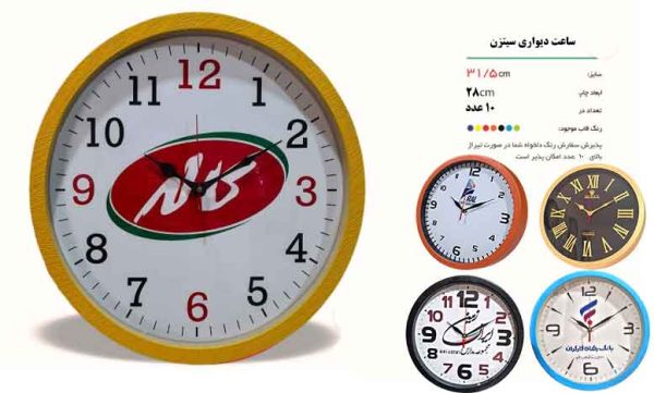 - ساعتهای دیواری تبلیغاتی در انواع طرحها و رنگهای مختلف قابل سفارشیسازی هستند. شما میتوانید طرحی را انتخاب کنید که با هویت بصری برندتان هماهنگ باشد و پیام مورد نظر شما را به بهترین شکل منتقل کند.